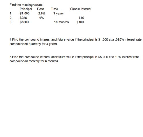 Solved Find The Missing Value Principal Rate Time Simple Chegg Com